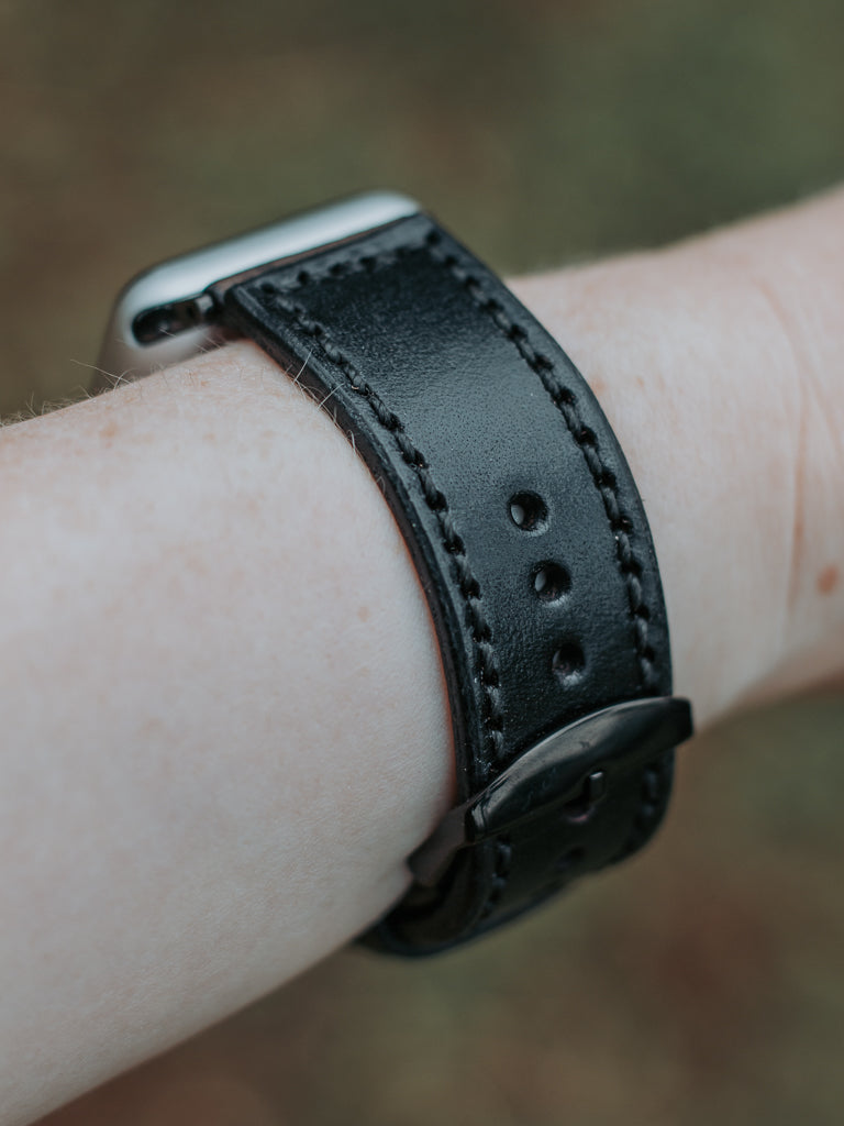 An artfully crafted and beautifully finished plain Apple watch strap.